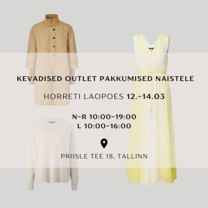 📣 Toome maale erinevate rõivabrändide outlet pakkumisi! Meilt leiad nii uute hooaegade tootenäidiseid kui ka möödunud hooaja tooteid allahindlusega kuni -70%! Lisaks kauplustele on sel neljapäeval ja reedel avatud ka laopoe uksed ajavahemikul 10:00-19:00. 📍Laopoe leiad Tallinnas aadressilt Priisle tee 18. Rohkem infot https://horret.ee/et/laomuuk